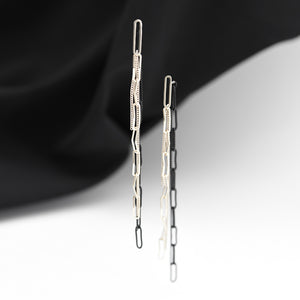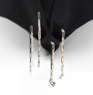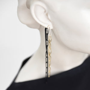 A dramatic combination of gold and black finishes, this elegant assortment of draped chains can be worn as the full dual-tone set, or with the black jackets removed as a single tone piece.